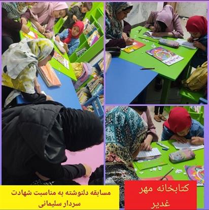 دختران نوجوان عضو کتابخانه مهر غدیر قاینات با نوشتن دلنوشته هایی ارادت خود را به سردار دلها اعلام کردند.